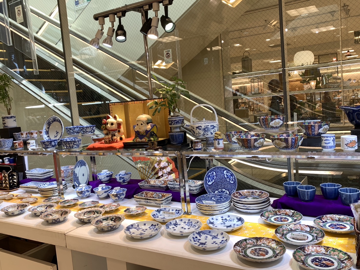エスカレーター横の立ち寄りやすいスペースです。お買い物ついでに、ぜひ時代を超えた手仕事の美しさに触れてみてください。
